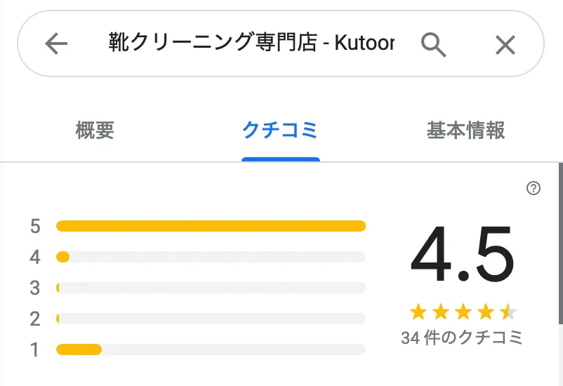 Googleの口コミ評価は4.5と概ね高評価でした。